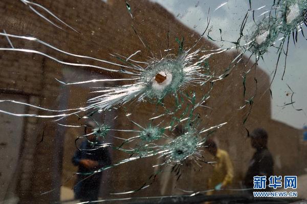 这是6月11日在巴基斯坦奎达拍摄的遇袭警车车窗上的弹孔。据巴基斯坦媒体报道,巴西南部城市奎达当日下午一警车遭武装分子袭击,造成4名警察死亡。新华社发(伊尔凡摄)