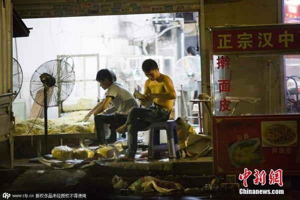 6月18日消息,近日,深圳一家热干面黑作坊被曝光:白天闸门紧闭,半夜忙碌赶工,每晚制面2000斤,供给深圳南山科技园。和面粉的工人坐在店前扣起了鞋子,然后又回到岗位继续和面粉。图片来源:CFP视觉中国