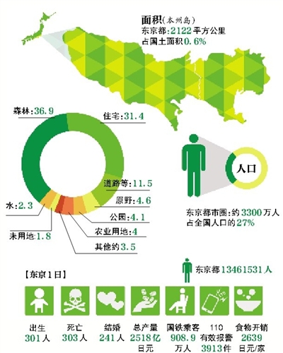东京是一个典型的从中心向四周扩张的大城市,最狭义的东京是指中心区域最主要三个区——千代田区、中央区与港区;第二是被称为“东京23区”的东京都区部,也是一般“东京”所指的范围;三是东京都,包括23个特别区、26个市、5个町和8个村。范围再往外就是东京都市圈,包含东京都和埼玉县、千叶县和神奈川县共“一都三县”。