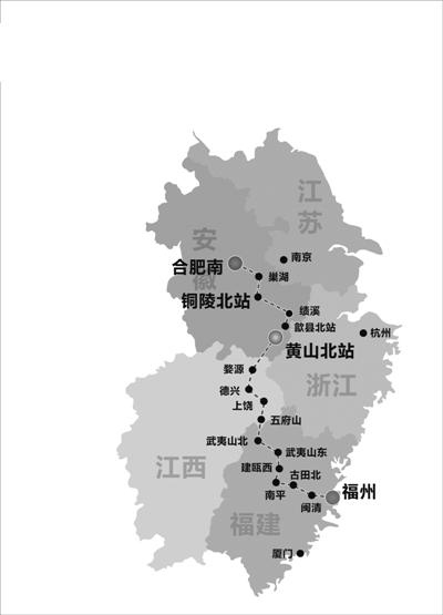 合福高铁于2010年开工建设,今年3月开始联调联试。铁路线跨越安徽、江西、福建3省,以合肥市为起点,福州为终点,沿途穿山涉水,绵延纵横850公里。