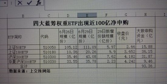 【导读】上交所刚刚公布的规模信息显示,6月29日沪市四大蓝筹ETF一起出现大幅净申购,合计资金流入规模高达100亿元,ETF单日出现如此大的申购规模,实属罕见。显示已经有神秘资金抄底股市。