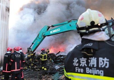 昨日下午,位于大红门的北京市木材厂库房突发火灾,消防员经过5小时扑救,将火势控制。新京报实习生 彭子洋 摄