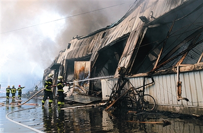 现场参与救援的消防人员介绍,之所以灭了这么长时间,是因为有不少仓库的木材堆放得很严实,一旦着起来,灭的时间会长些。