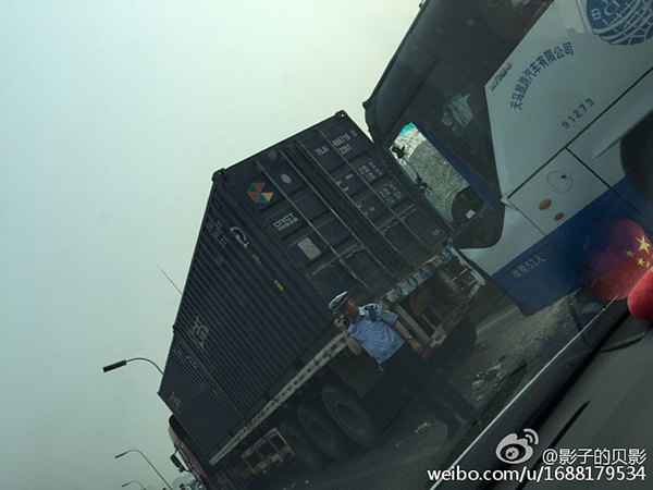 今晨发生在大郊亭桥的这起车祸,导致东四环南向北方向拥堵约4小时。