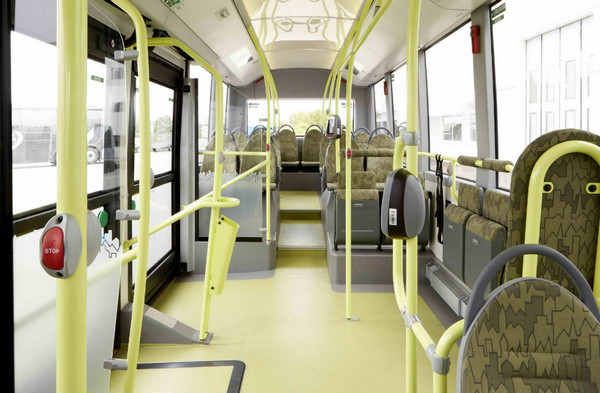 内饰方面,宽敞通风的车体空间、明亮的色彩装饰都能为乘客带来积极的乘坐体验。车门近旁的开阔空间可放置婴儿车或轮椅,车身前部则配备了折叠式座椅,以方便在交通高峰时为站立的乘客腾出更多空间。此外,无论是车顶还是地板,其表面材质及配色均经过了精心挑选。