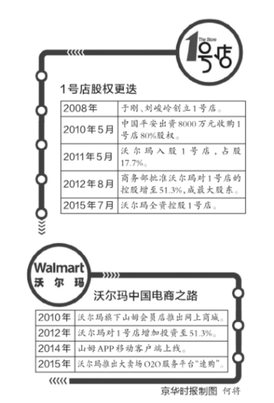 7月14日,沃尔玛官方确认,1号店创始人兼董事长于刚以及联合创始人兼首席执行官刘峻岭离开1号店。昨天,沃尔玛又宣布,公司已收购1号店余下股权,全资控股这家在中国发展迅速的电子商务公司。沃尔玛全球电子商务亚洲区总裁兼首席执行官王路的部分管理职责将包括领导1号店。