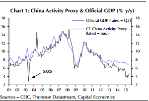 朗伯德街研究表示,按产出测量的话,中国目前真正的经济增长速度低于4%。资本经济公司(Capital Economics)和牛津大学经济学(Oxford Economics)根据各自的跟踪系统也得出了相似的判断。