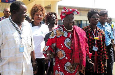 24日,肯尼亚基苏姆城,奥巴马的继祖母萨拉抵达机场,准备去内罗毕接自己的孙子。萨拉是奥巴马祖父的第三个妻子,实际上与奥巴马并无血缘关系。