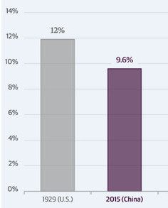 Minerd表示,“尽管两融余额在近期的股市下跌中开始下降,但是目前的两融水平仍然是非常高的。这预示者中国股市未来仍将会有动荡。如果中国的监管机构不能找到解决办法,那么中国股市在未来的走势很有可能复制1929年美国股市大崩溃的一幕。相比之下,美国股市目前的融资比例低于3%。”