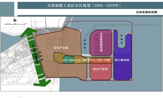 据公开资料显示,南港工业区规划面积200平方公里。在《天津市城市总体规划(2005-2020)》中,就已经确定将大港新城打造为国家级石化基地,重点发展石油化工产业,建设成为现代化石油化工基地和原油、成品油集散中心,滨海化工区被列为七大功能区之一。该规划还提出,在产业布局方面继续壮大石油和海洋化工、汽车和装备制造、现代冶金等支柱产业。
