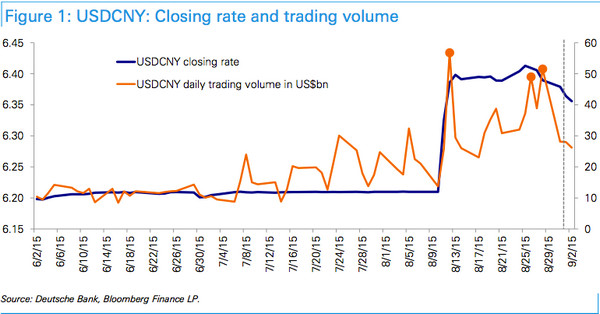 9月最初两个交易日,人民币兑美元汇率实际升值幅度可观,而日成交额出现萎缩