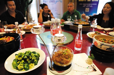9月10日,由北京市餐饮协会、新京报社与昆仑山雪山矿泉水联合举办的京城十大“源味”餐厅评选活动继续进行。多位“吃货”齐聚潇湘府北京管庄店,品厚重丰富的湘味美食,饮“小清新”的昆仑山雪山矿泉水,好一场绝妙搭配。