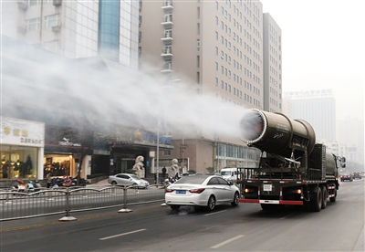 应对雾霾,郑州的一项重要措施是洒水,但这却引起争议重重。