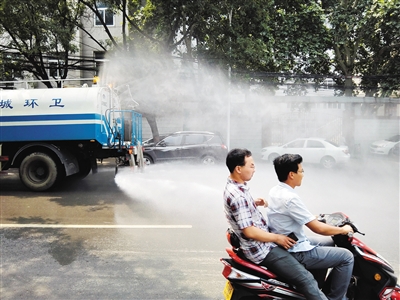 郑州市城管局表示,目前气温较高时段,郑州市区每天的道路洒水降尘实际用水约1.5万吨。