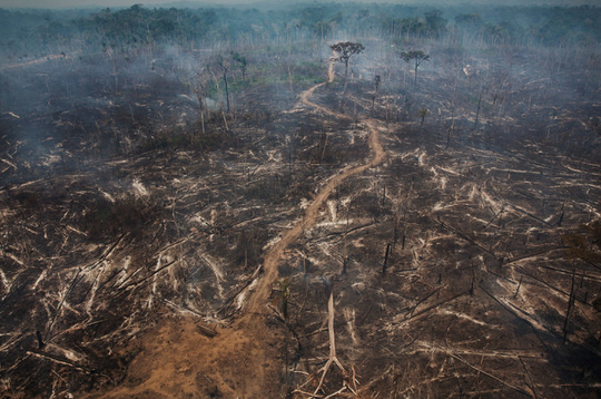 巴西亚马逊一片被烧焦的森林
