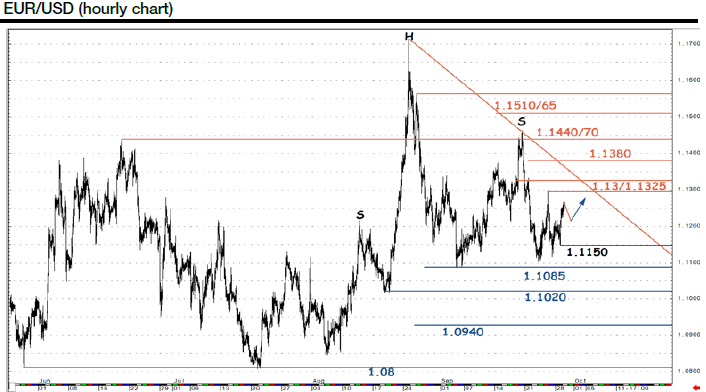 法国兴业银行(Societe Generale)策略师团队指出,欧元/美元的反弹仍处在旗形整理中,汇价可能进一步朝1.1510/65的8月高位跌势76.4%回撤位迈进。