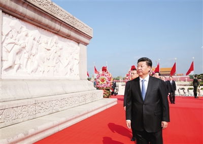昨日上午,习近平等党和国家领导人瞻仰人民英雄纪念碑。当日,烈士纪念日向人民英雄敬献花篮仪式在天安门广场举行。习近平、李克强、张德江、刘云山、王岐山、张高丽等,同首都各界代表一起出席仪式,并向人民英雄敬献花篮。2014年,中国以法律形式将9月30日设立为烈士纪念日。新华社记者 黄敬文 摄