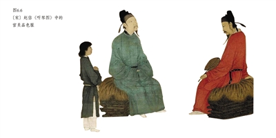 赵佶《听琴图》中的官员品服。