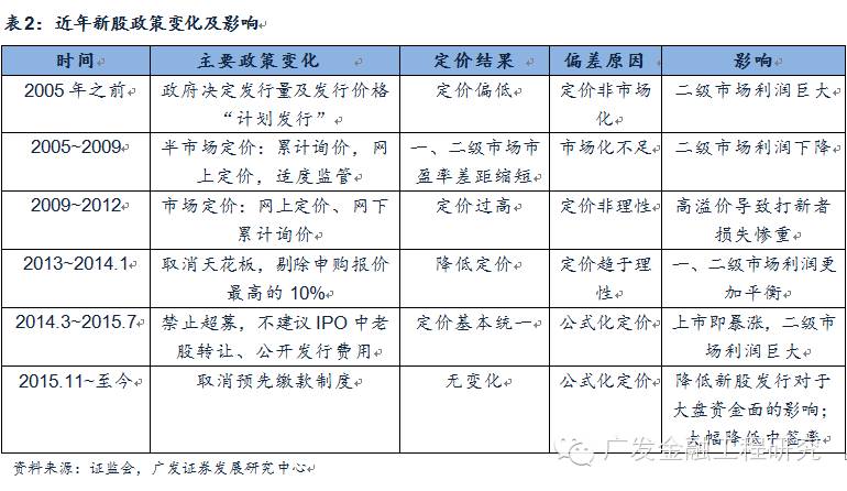 近年来,我国的新股政策发生了数次交大的变动,从2005年之前的政府决定发行量以及发行价格的“计划发行“到逐渐放开新股发行的数量和价格。在这个过程中,市场在新股的定价中逐渐扮演起重要的角色,一、二级市场利润也得以平衡。最近一次政策的变动发生在2014年上半年,自此以后,新股的发行价基本可以由公式得到,统一的定价大大增加了网下申购投资者的入围概率,但也造成了中签率的大幅降低;同时,由于预先缴款机制,在新股发行时往往会冻结大量的资金。而本次改革取消了预先缴款制度,很大程度上降低了新股申购对于大盘资金面的影响,同时也将大幅降低新股中签率,进而降低打新的收益。