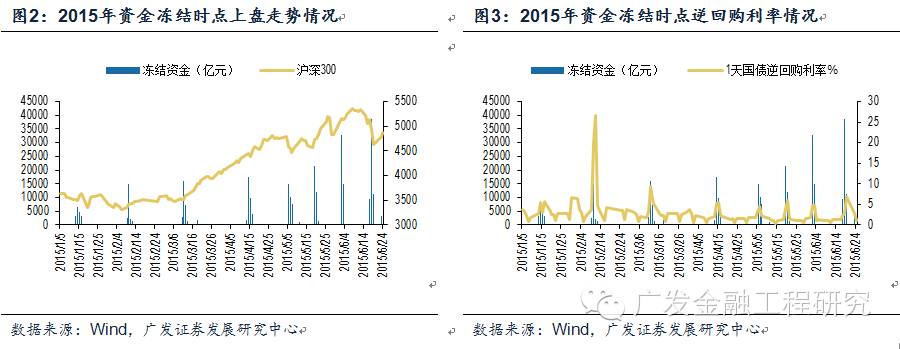 我们观察2015年上半年新股申购的时点,每每出现大盘股申购,或者多只小盘新股申购时,往往出现市场资金巨额流向新股申购,不仅导致市场大幅波动,也引发1天期国债逆回购利率大幅波动。