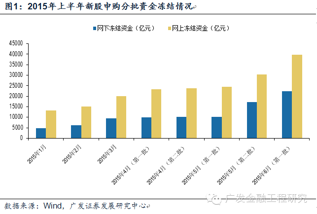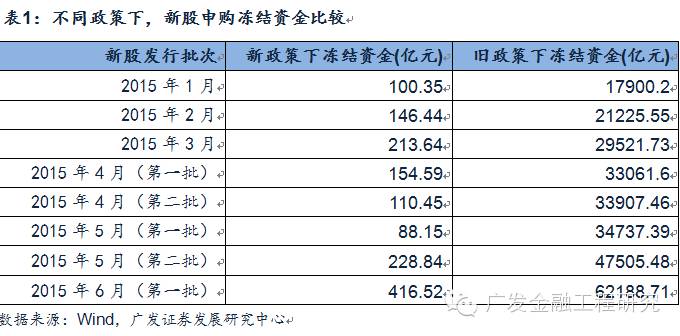 与宣布IPO重启的同时,证监会还宣布了五项同步实施的措施。在这五项措施中,我们认为对于市场影响最大的是预先交款制度的改变:针对巨额打新资金取消现行新股申购预先缴款制度,改为确定配售数量后再进行缴款,强调新股申购自主决策、自担风险、自负盈亏,券商不得接受投资者全权委托申购新股。这意味着以后不管是个人投资者还是机构投资者,只要符合证监会其他相关要求,在进行新股申购时,暂先可以不用考虑资金问题,配售或中签成功之后才缴款。现行制度往往会在新股申购期间形成大量的资金冻结,对市场的流动性造成不小的压力。以2015年6月第一批发行25只新股冻结资金为例,峰值时达到了5.69万亿元;而如果取消,仅需缴纳417亿元。