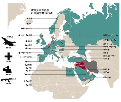 与此同时,美俄等国意识到IS的威胁,先后对伊拉克和叙利亚境内的IS组织进行军事打击。作为欧洲大国,法国一直有参与对IS的打击。本月5日,法国总统还发布公报,将部署包括“戴高乐”号航母参与打击IS极端组织的行动。当天,法国总统奥朗德还召集国防会议,针对叙利亚和伊拉克的安全局势进行讨论。