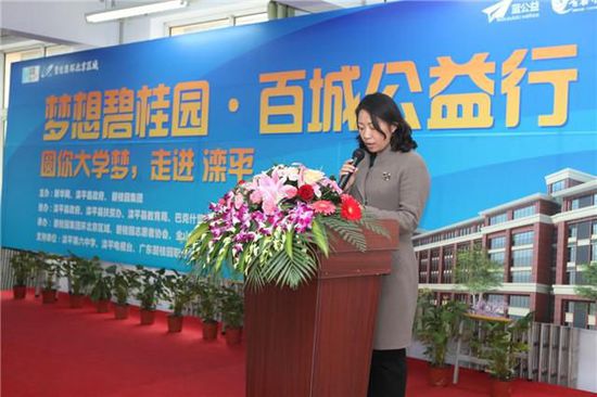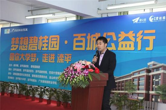 11月17日,碧桂园集团联合新华网主办的“梦想碧桂园·百城公益行”圆你大学梦走进滦平活动在滦平县第六中学隆重举行。“梦想碧桂园·百城公益行”圆你大学梦行动,是碧桂园集团积极响应党中央关于“推进中等职业教育和职业技能培训全覆盖,逐步实现免费中等职业教育”的要求,携手新华网主办的“2015中国‘授渔计划’百城助学”圆梦系列活动之一,此活动得到了中央文明办、共青团中央、教育部的大力支持。