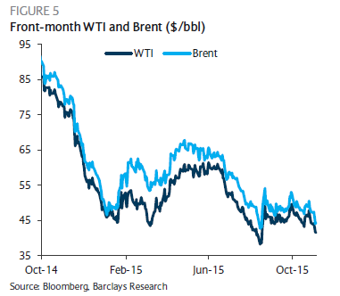 油价自去年早期的110美元高位一路走低。目前,美国纽约原油期货价格在40美元附近浮动,布伦特原油期货价格在44美元附近浮动。