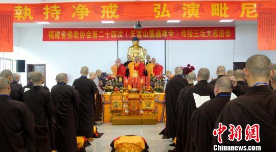 中新网龙岩11月22日电 (作者 瑞祥)有1300多年历史的闽西佛教圣地圆通寺22日举行福建省佛教协会第二十四次传授三坛大戒法会中最隆重的传授菩萨戒盛会。