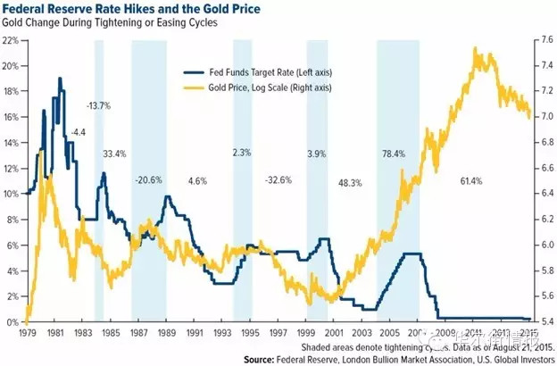 图:美联储升息和金价,黄金价格在紧缩或是宽松周期会出现变动