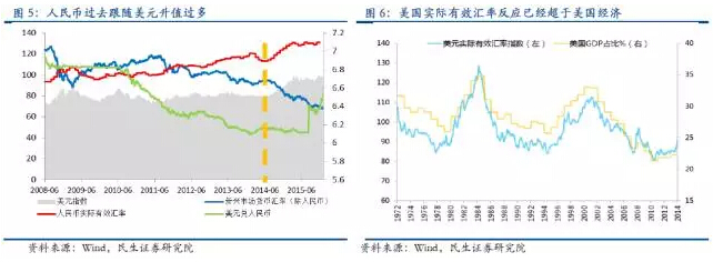首先,央妈是主动不干预,并非有心无力,我们外汇储备仍然有3.44万亿美元,并非没有弹药,因此年底以来的人民币走弱是央妈主动不干预、放任市场波动的结果;其次,央妈在引导市场改变关注汇率的视角,从盯住单一兑美元汇率转向强调一篮子汇率,12月底中国外汇交易中心高调发布CFETS人民币汇率指数(盯住一篮子货币)正是此意,由于其余新兴市场货币都在贬(2014年年中至今,除中国外新兴市场货币贬值28%,同期美元指数升值17%,人民币兑美元贬值6.7%,人民币实际有效汇率指数升值14%),其实相对一篮子货币而言,人民币并没有贬很多,反而处在高位;再次,人民币美元的连裆裤时代已经过去,人民币已成功加入SDR,与美元脱钩是必然,SDR中并不需要两个相关性极强的货币,如2001年SDR加入欧元后,就同期剔除了德国马克和法国法郎,同时考虑中美货币政策与经济基本面皆存差异的情况下,相对美元有一定幅度的回调是适当的,自从美国QE退出预期以来,过去一年半内,人民币跟随美元被动升值过多。