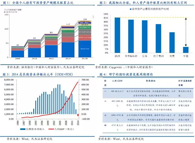 自己的钱要出去:从个人来讲,资产配置全球化势不可挡,这部分将增加资本账户逆差,目前中海外投资仅占7.8%(10万亿左右),相比日本42.2%,欧洲45.5%差距甚远,近几年海外资产配资需求已经有所体现,其增速大幅跑赢其余资产,同时海外旅游消费快速增长,去年已经达到1079亿美元,占服务逆差的71.46%,成为服务贸易逆差最主要动因,由于人均收入提升、国内旅游条件较差、国内外商品价差等因素,此项仍在快速增长。从企业来讲,依照国际经验,已经进入了对外直接投资净输出阶段,企业有走入国际市场的能力与需求,如我国的高铁技术系统性的位于国际领先地位,已经具备国际一流竞争力。