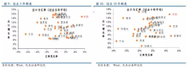 短期内,提振效果有限,宏观来看,考虑到全球老龄化的需求下滑与发达国家贸易再平衡挤压的大背景,出口的英雄时代早已过去,微观来看,由于涉外企业贸易合同大部分合同锁定,短时间内即便有产品相对价格的变化,调整也具有滞后性;中长期5年、10年视角来看,从国际大数据规律来看,贬值幅度与出口增长率并没有呈现明显的线性关系,或者说贬值一定多少会对出口有所影响,但是至少并不是单纯靠贬值就可以提振的。