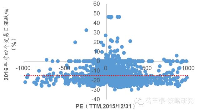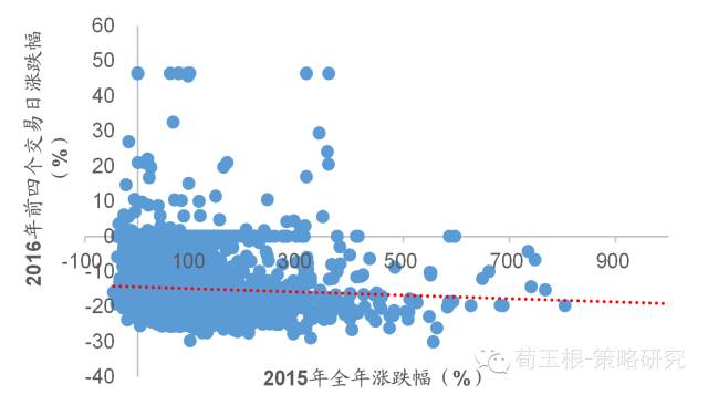 市场下跌有起因,跌姿很凌乱。16年开年第一周市场大跌,1月4日和7日两天4次熔断、提前收市,A股再次创造历史。客观分析,市场下跌有自身的诱导因素,1月4日市场大跌源于投资者担忧1月8日大股东减持及人民币贬值,1月7日市场大跌主要源于人民币贬值加剧,出于对811汇改后市场暴跌的痛苦记忆,投资者担忧情绪明显上升,风险偏好加速回落。下跌有原因,不过市场下跌方式和姿势很凌乱,统计前四个交易日个股涨跌幅发现,与2015年全年涨跌幅没有明显负向关系,与估值高低也没有明显负向关系。