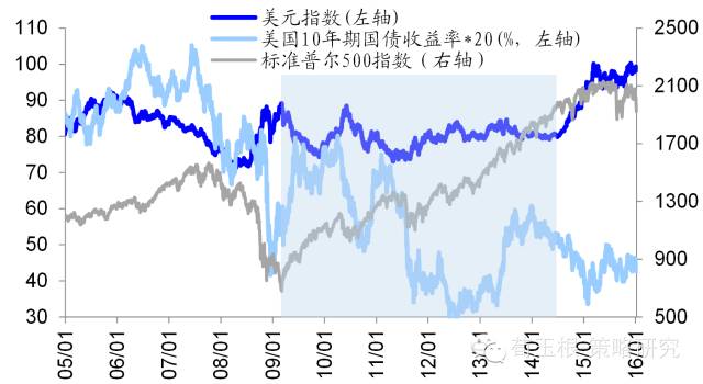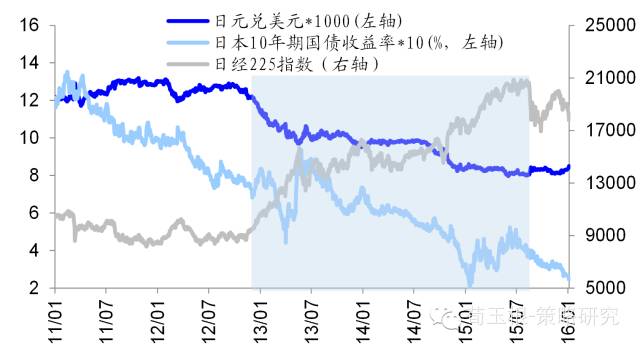 汇率和股市都是因变量,主动贬或被动贬,股市表现不同。汇率和股市直接的关系不稳定,因为这二者都是因变量,自变量是货币流动性、经济增长。货币宽松、经济增长稳定时,汇率贬值可称为主动贬值,此时股市上涨。经济受困、基本面恶化时,汇率贬值可称为被动贬值,此时股市下跌。最近几年美国、日本货币贬值都属于主动贬值,股市上涨。美国从08年底到14年10月共实施四轮量化宽松政策,美元指数在此期间震荡下跌,标普500一路上涨源于流动性宽松及基本面渐好,十年期国债收益率不断下降。12年底日本实施“安倍经济学”,实施大规模量化宽松,12年底到15年7月日元对美元贬值60%多,日经225指数涨幅130%,日本十年期国债收益率从8%下降到2.5%。相反,俄罗斯货币贬值属于被动贬值,股市下跌。14年7月开始布伦特原油价格从110美元每桶下跌到34美元每桶,俄罗斯经济高度依赖于石油出口,油价的下跌引发俄罗斯卢布大幅度贬值,美元兑卢布从14年7月的32上升到目前的72,十年期国债利率从8.1%一度上涨到14%,股市暴跌了40%多。