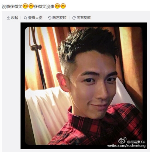 去年12月底,他曾晒出一张微笑的帅照,并留言称“没事多微笑,多微笑没事”,既是对网友的鼓励,也是给自己加油打气。此外,他也写过“所有事情尽自己最大所能外,就是努力的正面思考了!全世界加油”这样充满激情又心态平和的话语。