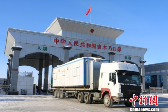 此间1月13日13时许,记者在吉木乃口岸现场看到,来自哈萨克斯坦的货车缓缓驶进中国境内。 郝胜忠 摄