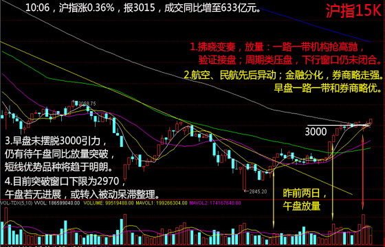 三.昨天没有专门分析一路一带相关个股,但其走势与指数密切相关,基本以指标角色运行,可参考;中石油最后一拉,算护盘了,可关键的是接下来的真金白银、货真价实的突破量能。