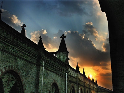 晚霞下的城西教堂