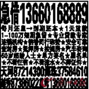 每格1cm×4cm,标题8个字,内文16个字,黑白340元,彩色442元。