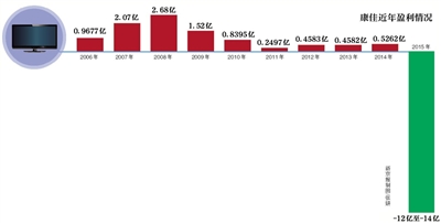 新京报讯(记者李媛)2016年1月22日,深康佳A发布2015年度业绩预告,预计归属于上市公司股东的净利润将亏损12亿-14亿元。去年同期,这个数字为盈利5262万元。