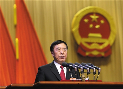 北京市高级人民法院代理院长杨万明作工作报告。新京报记者 薛珺 摄