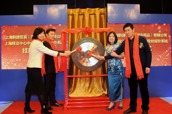 仇静坚女士表示,公司今天登陆上海股交中心,标志着公司走向了一个更加辽阔的舞台,我希望韵源能够像酒仙网的郝鸿峰打造中国乃至全球最大的酒店用品一站式采购平台那样,继续为全球的酒店提供高标准、一站式、低成本的系统解决方案。今年,韵源将借助牛商会成立酒店产业专委会之机,建立24个连锁联盟公司,同时提供品牌、互联网技术、移动商城以及物流配送支持,形成一个“线上(JJOME酒店用品1号店)”+“线下(酒店场景是体验)相结合、“线上网站”展示+“线下实体店”体验+第三方物流配送为一体的创新型商业模式。![]()