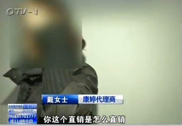 青岛-今日电话采访了中国反传销协会李旭:其实康婷是拿着直销牌照的,但是直销牌照不是护身符,因为我们《直销管理条例》规定的很清楚,中国只开放单层次的直销,那种团队计酬的直销是被定性为传销活动的,所以像康婷这种模式,又要你交一万两万去买它的产品,说白了也就是一个变相的入门费;第二个也得发展下线,第三层层给他们返利,明显就符合了《禁止传销条例》对传销的一个定义!