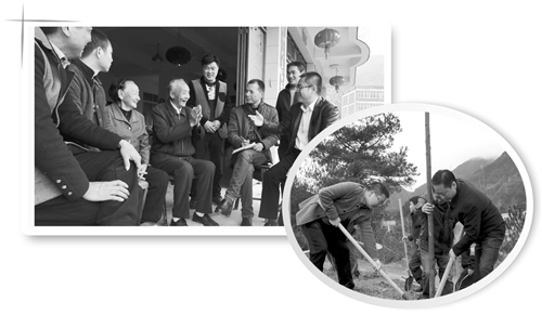 左图 2月14日,福建省闽侯县鸿尾乡党委副书记、纪委书记郑崇和(右一)在超乾村老党员郑春生(左四)家里了解乡村党员干部廉洁自律情况。