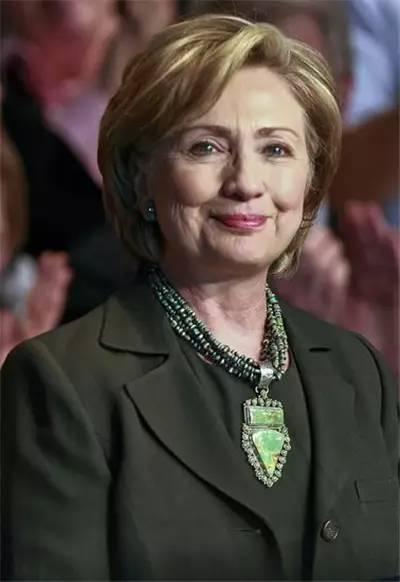 要说希拉里有多喜欢绿松石,看她的衣服颜色就知道了,一水儿的蓝绿色,搭配同色系绿松石饰品,庄重不失典雅,时尚不失风情。
