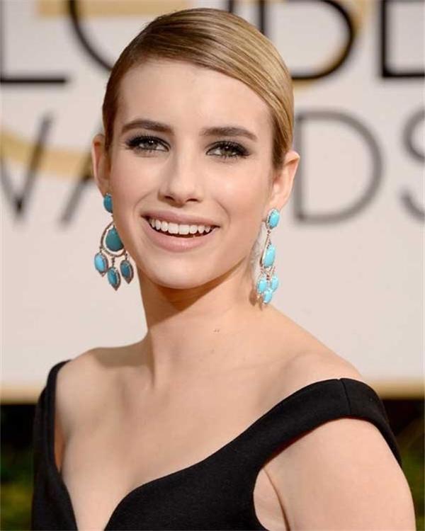 Emma Roberts身穿黑色礼服,佩戴绿松石吊灯耳环,霸气中带有点儿妩媚。