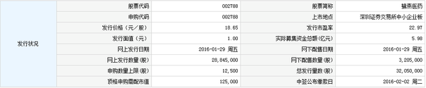 鹭燕(福建)药业股份有限公司人民币普通股股票将于2月18日在深交所中小板上市。证券简称为“鹭燕医药”,证券代码为“002788”。公司人民币普通股股份总数为128,168,800股,其中首次公开发行的32,050,000股股票自上市之日起开始上市交易。