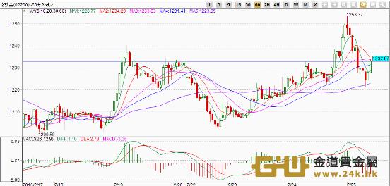策略:可参考在1226美元价位买入黄金, 1223美元止损,目标1237美元
