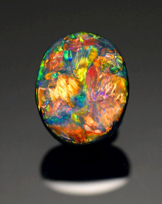 艺术家杜拜(DuBle)写出了富有诗意的描述:“当自然点缀完花朵,给彩虹着上色,把小鸟的羽毛染好的时候,她把从调色板上扫下来的颜料浇铸在欧泊石里了”。